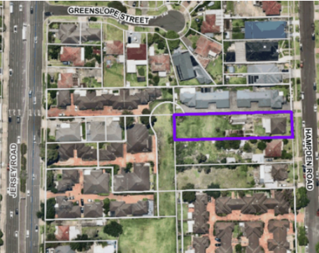 The Draft VPA is related to a development application (DA2023/0705) which was approved for the construction of a two storey, 100 place centre-based childcare facility with basement parking for 25 vehicles and associated landscaping and stormwater works at the subject site. The draft VPA proposes to dedicate a portion of land at the rear of 25 Hampden Road, South Wentworthville as shown below, for the extension of a public road: