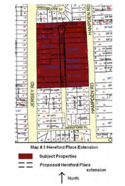 Council officers have undertaken an assessment of the Draft VPA and consider it to be consistent with the Cumberland Planning Agreements Policy and Guideline, as it would provide a public benefit through land dedication that would enable Council to construct an extension to an existing public road that is identified in local planning controls. The future public road that is identified in local planning controls. The future public road which requires a portion of the site is identified in local planning controls. The future public road which requires a portion of the site is identified in the Cumberland Development Control Plan (DCP) 2021 (Part F1-11 Hereford Place, Wentworthville) as shown below: