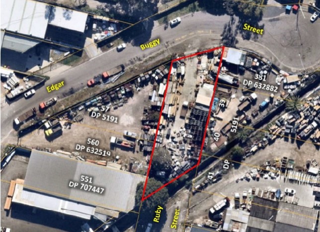 The subject portion of unformed road reserve is bounded to the west by Lot 57 DP 5191 and Lot 560 DP 632519 (10 Ruby Street), and to the east by Lot 381 DP 632882 and Lots 39 and 40 DP 5191 (19–21 Edgar Buggy Street). The land is bounded to the south by Duck Creek and to the north by Edgar Buggy Street and surrounding industrial premises. Access to the site is available from Edgar Buggy Street only.
